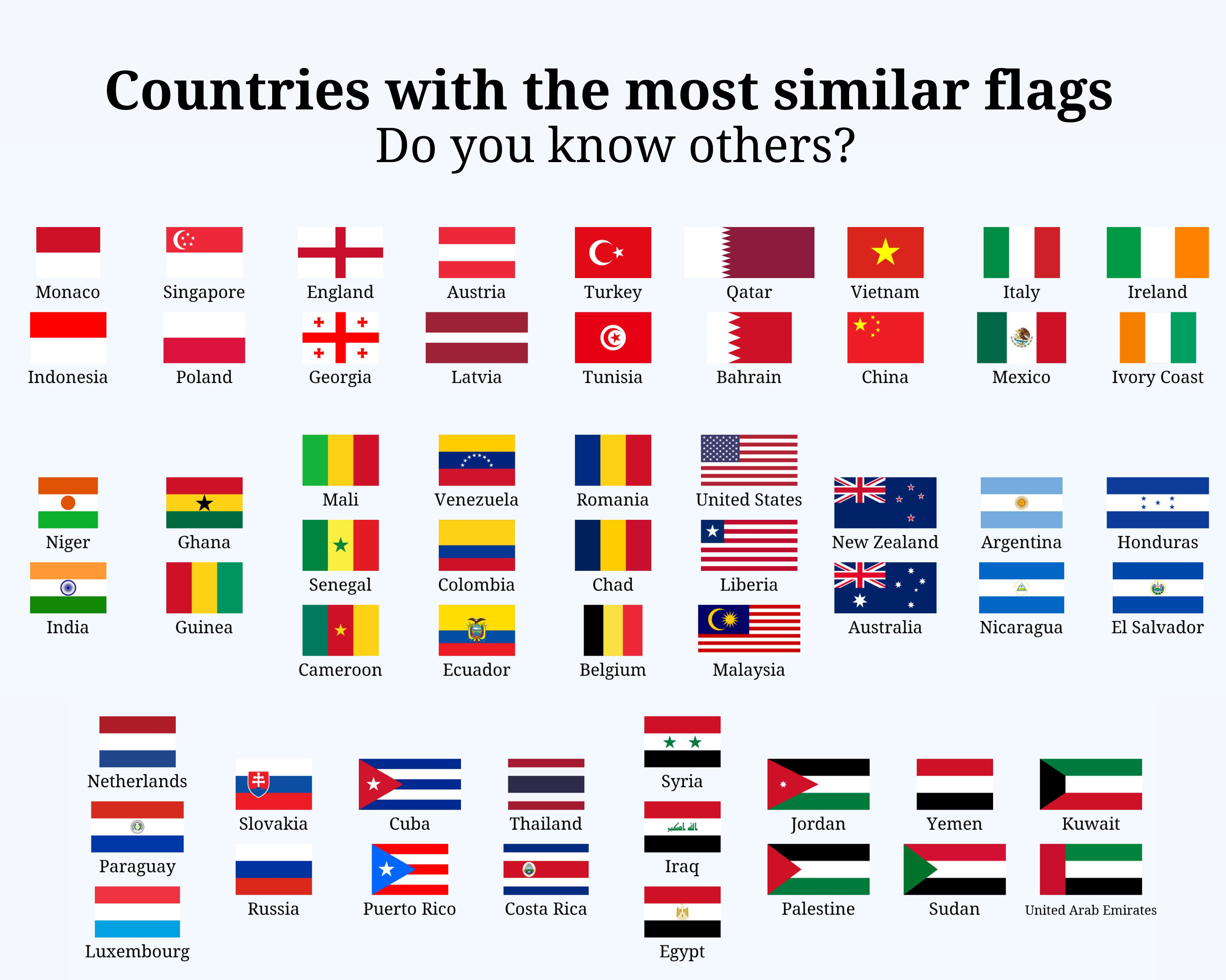 そっくりな国旗 激似編 国旗クイズで挑戦!似ている国旗を見分ける方法と解説。