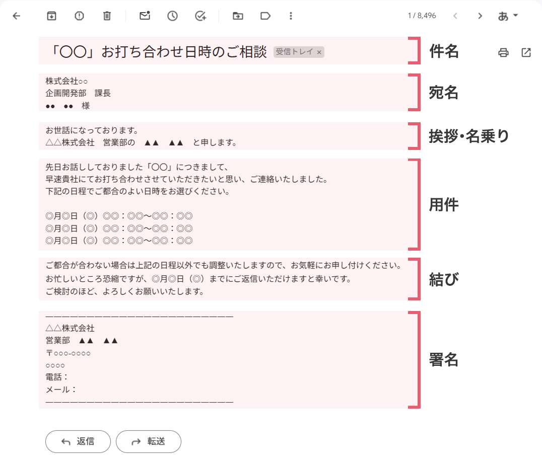 例文 ビジネスメールの基本!書き方や返信の仕方を解説 - CANVAS若手社会人の『悩み』と『疑問』に答えるポータルサイト。