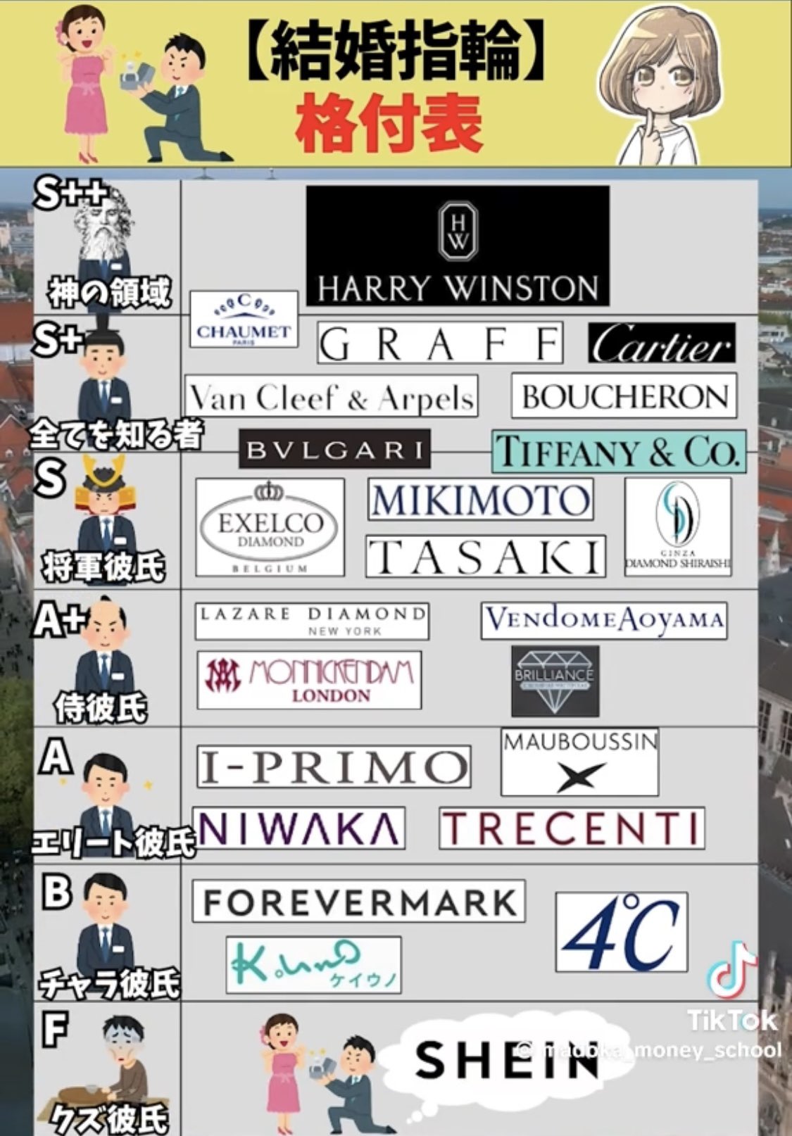 エマ航空会社の人 on X: "仲の良いANA CAも納得してたし、 この「結婚指輪格付け表」はガチみんな、買えた?https:t.co 1ItUdlSiTj"X。