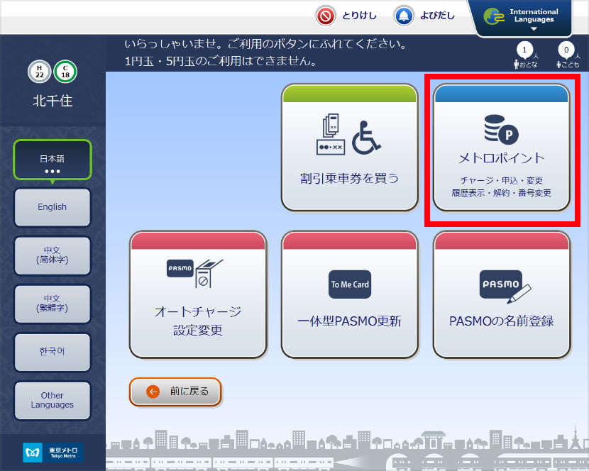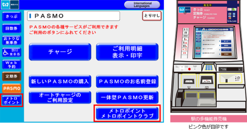 多機能券売機・ICチャージ専用機のご案内Tokyo Metro To Me CARD。