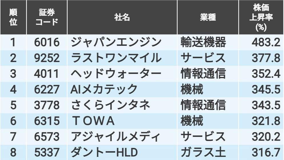 首位583%「2024年前半の株価上昇率」トップ300 55社の株価上昇率が100%以上になった企業ランキング東洋経済オンライン。