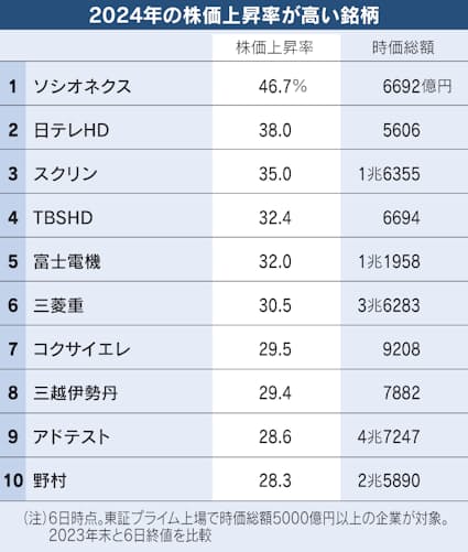 年初からの株価上昇率 半導体関連や民放上位に - 日本経済新聞。