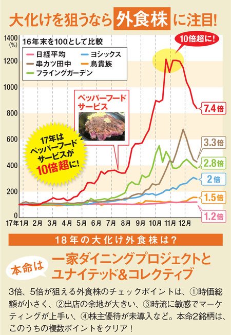 2018年に爆上げする「大化け株」をアナリスト4人が大胆予測!昨年、株価が好調だった外食株 の中では「一家ダイニングプロジェクト 9266 」に注目!株式投資で儲ける方法&注目銘柄を大公開!ザイ・オンライン。