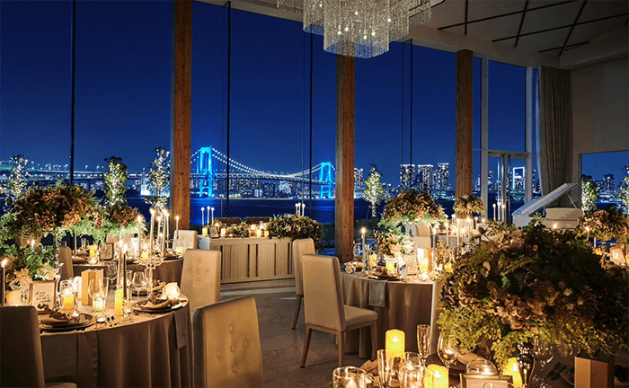 演出やサプライズ重視なら」レインボーブリッジが見えます。お台場の景色のなか挙式ができま 口コミ・評判ララシャンスガーデン東京ベイウエディングパーク。