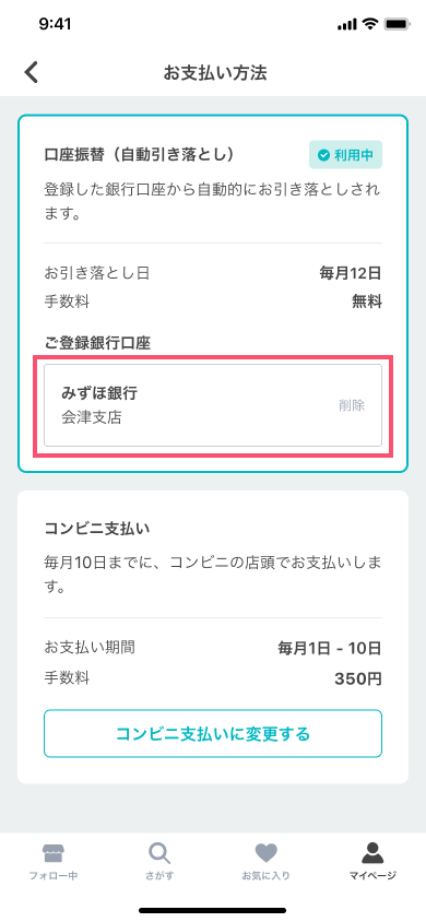 メルカードの自動引き落とし口座を登録・変更する方法。