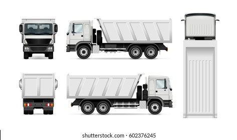 ダンプトラックのベクターイラスト。白いトラックセット。すべての画層とグループは、編集が容易になるように整理されています。側面、背面、前面、上面から見る。」のベクター画像素材 ロイヤリティフリー602376245Shutterstock。