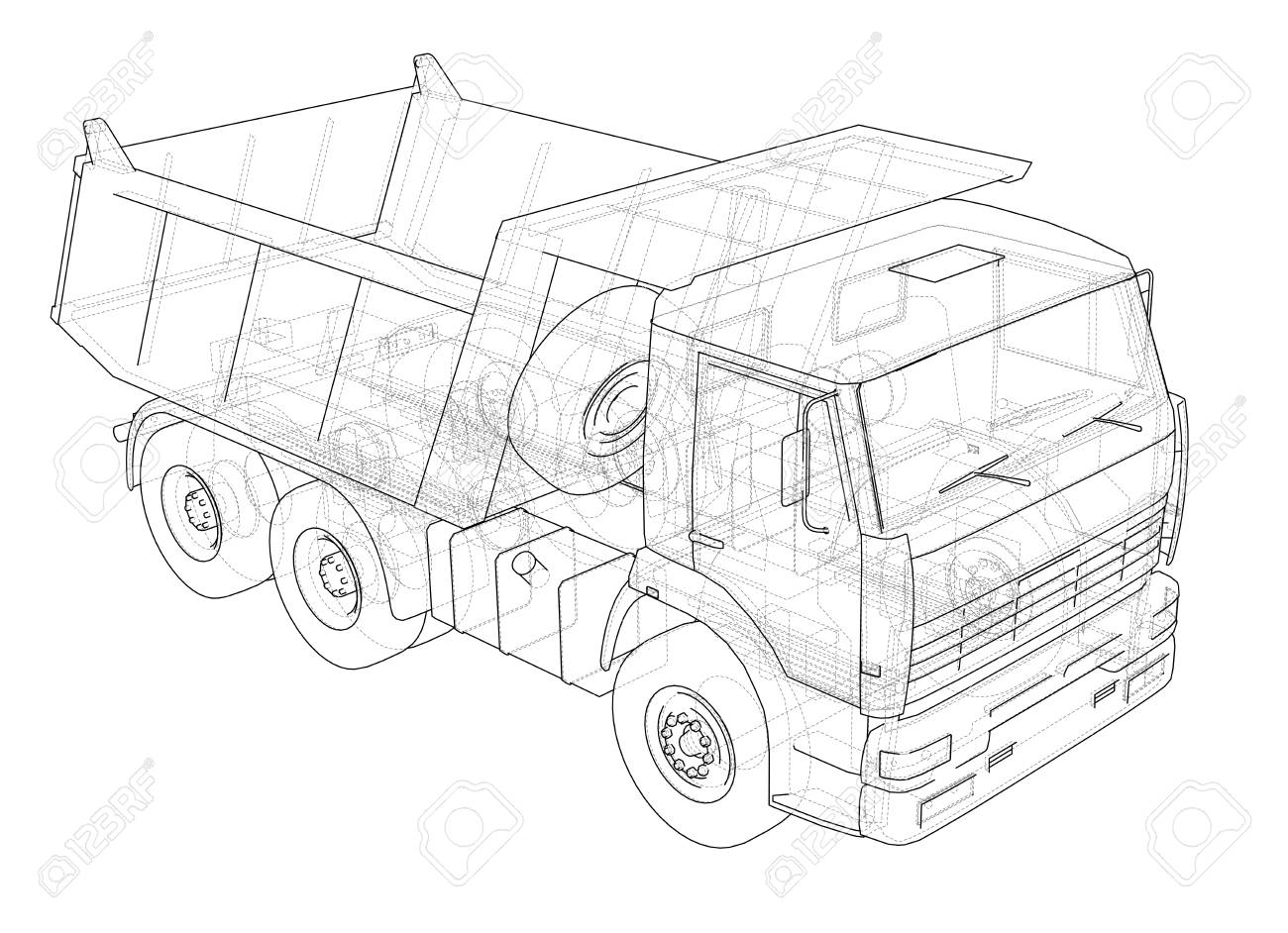 ダンプ トラックのベクトル スケッチ図面イラスト ストックベクター ©[email protected] 223811866。