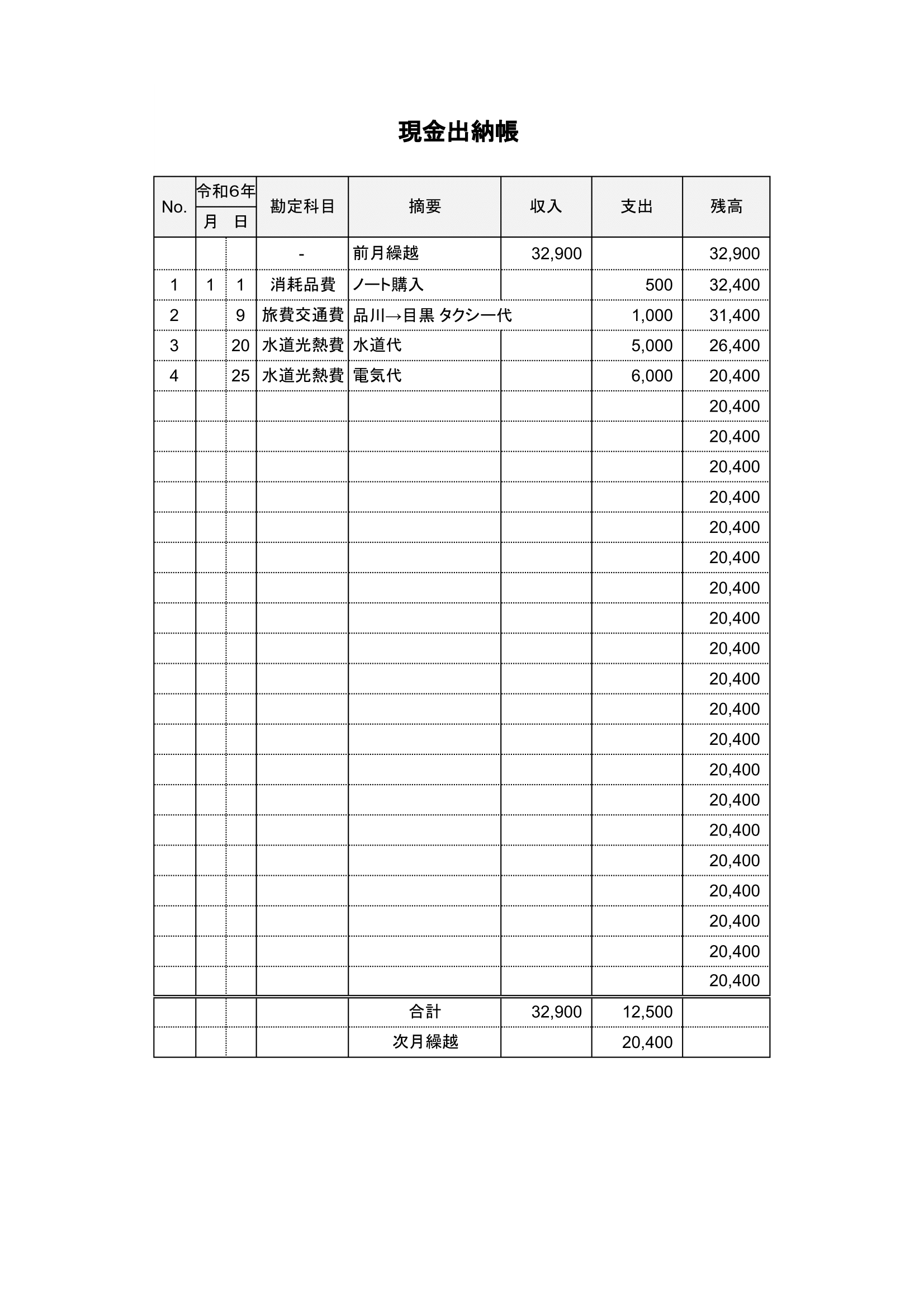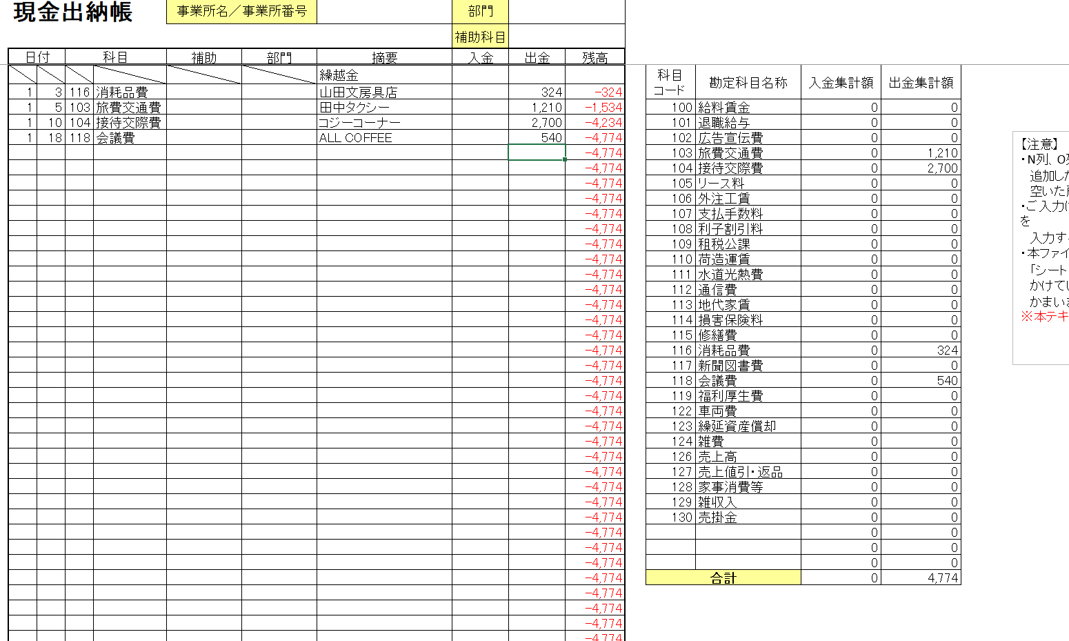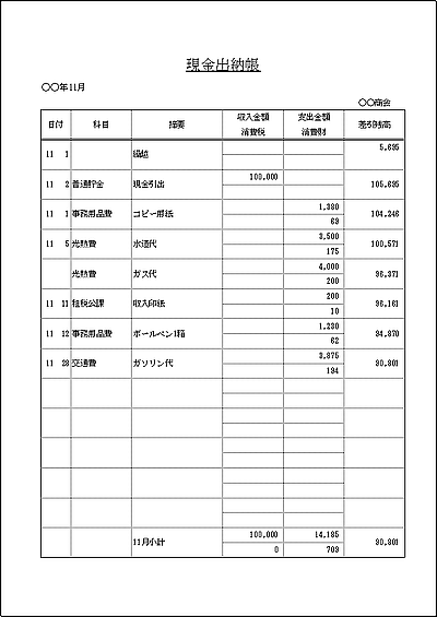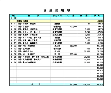 現金出納帳 経理 エクセルテンプレート - 無料ダウンロード。エクセルのテンプレートが充実。