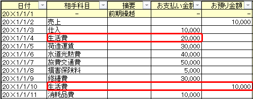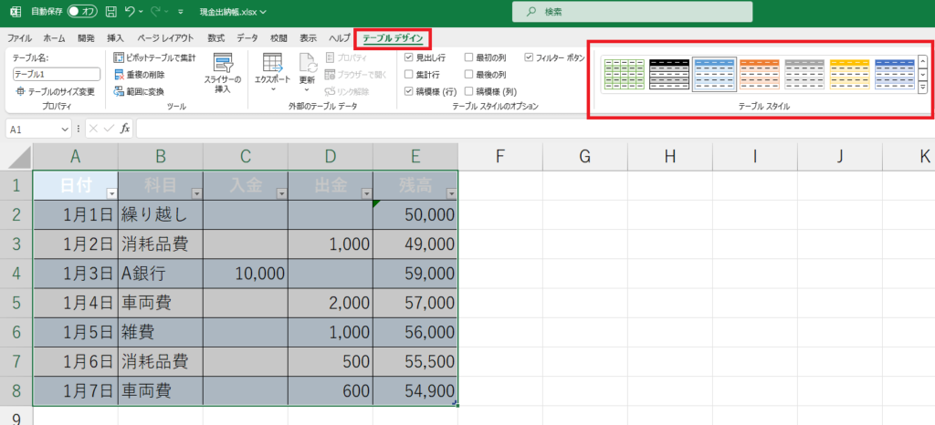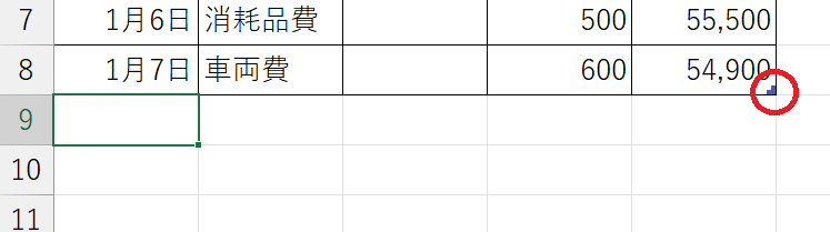EXCELで現金出納帳。