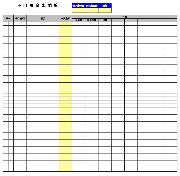 エクセル小口現金出納帳テンプレート - エクセルフリー 無料ダウンロード。