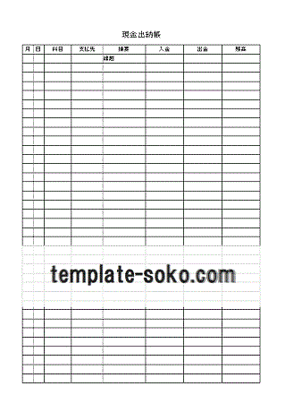 現金出納帳のテンプレート・Excel無料のビジネス書式テンプレート。