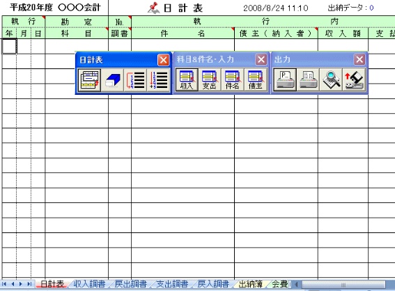 簡単エクセル出納帳。