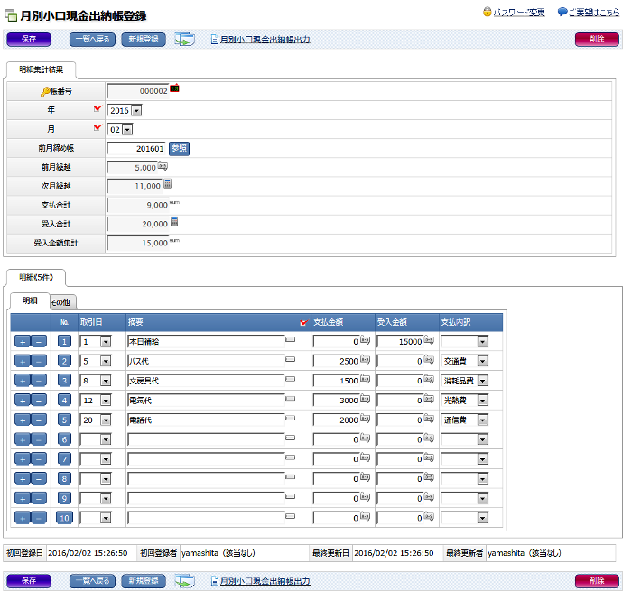 小口現金出納帳を作成するノーコード型エクセル業務効率化支援ツール 楽々Webデータベース。