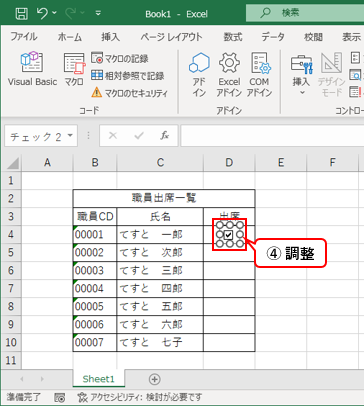エクセル チェックボックスを色と連動・マクロで一括連動! - 瞬習エクセルアカデミ。