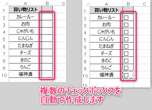 エクセルマクロ チェックボックスを複数一括作成 動画ありkirinote.com。