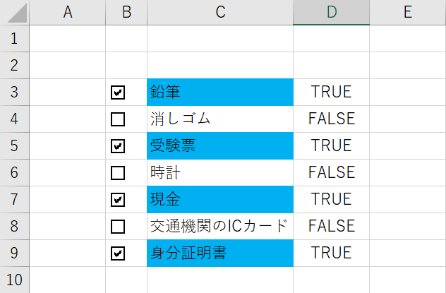 Excel エクセル でチェックボックスを活用した色付け・塗りつぶしの方法。