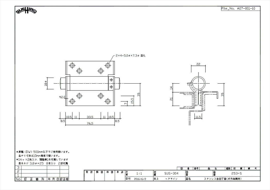 片方向開き用ステンレス自由丁番自由丁番丁番類製品情報末広金具株式会社。
