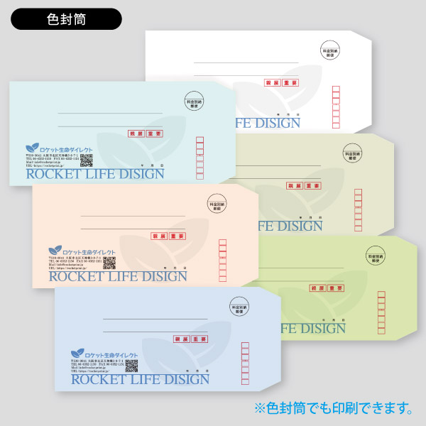 生命保険会社1長3デザイン封筒印刷のロケットプリント。