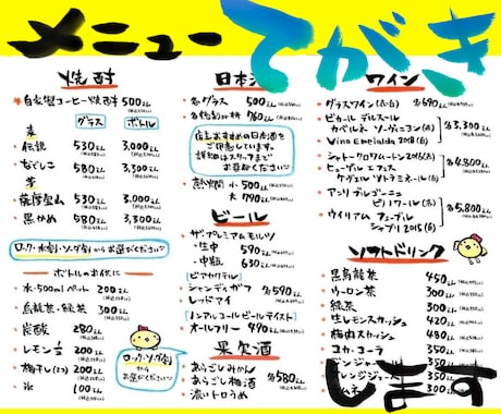 丁寧な手書き!居酒屋メニュー書きます 元気で賑やか、美味しい文字ですココナラ。