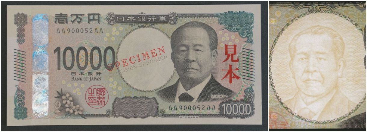 新1万円札の実物を初披露、流通は24年度上期めど:朝日新聞。