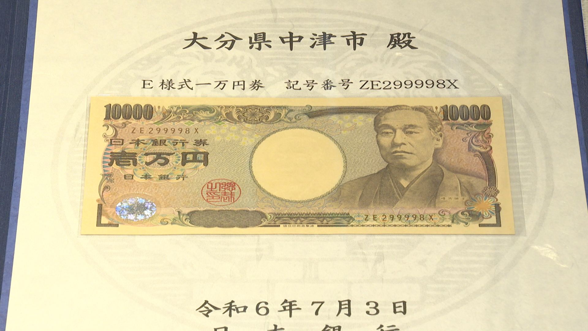 福沢諭吉「最後の1万円札」記番号ZE299998X ふるさと大分・中津市に寄贈大分のニュースOBS NEWS大分放送1ページ。