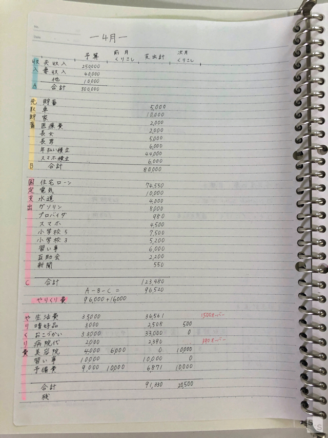 画像つき 簡単で効果のある手書き家計簿のつけ方 書き方 の見本 記入例: 2年間で350万円貯めた!ズボラ主婦の節約家計簿管理ブログPowered by ライブドアブログ。