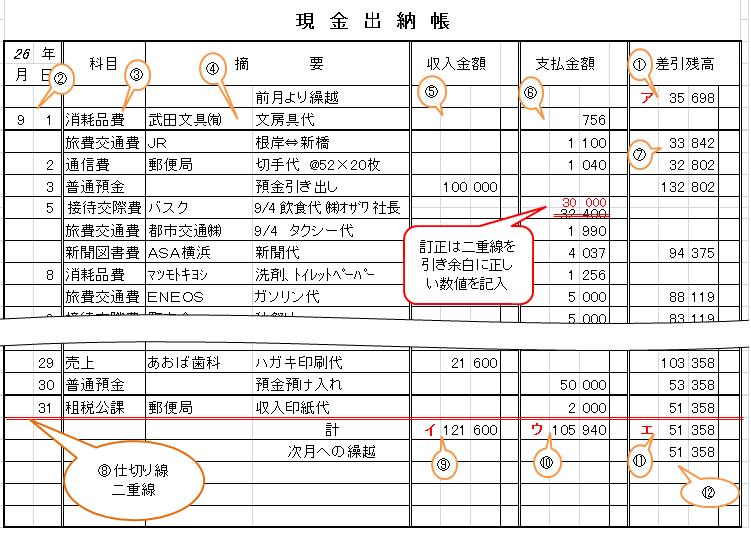 現金出納帳の書き方と試算表の使い方 サンプル・見本テンプレート付 書式の例文書き方コラムbizocean ビズオーシャン ジャーナル。