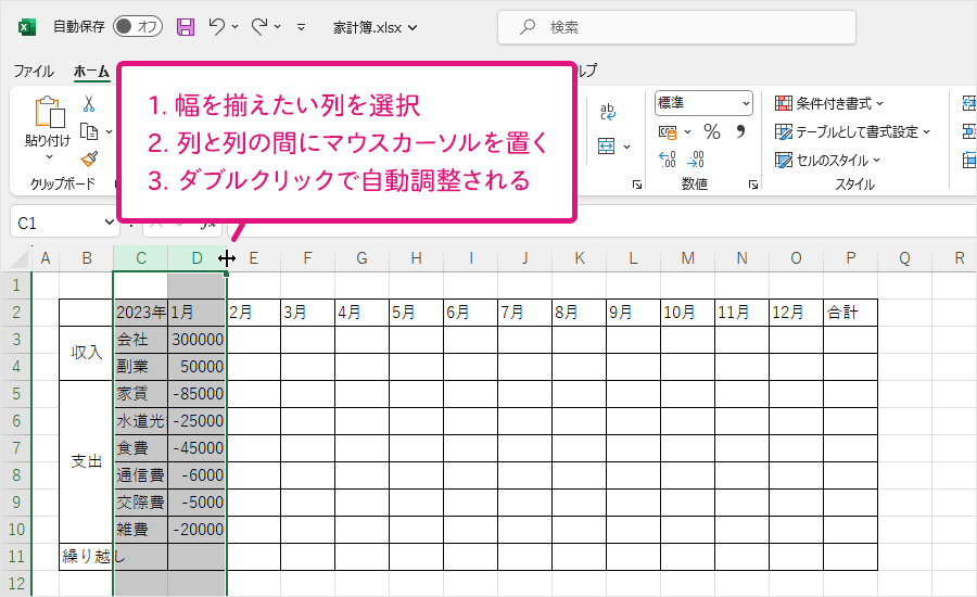 2025 エクセル家計簿の作り方!簡単なやり方と高度な装飾方法キャド研。