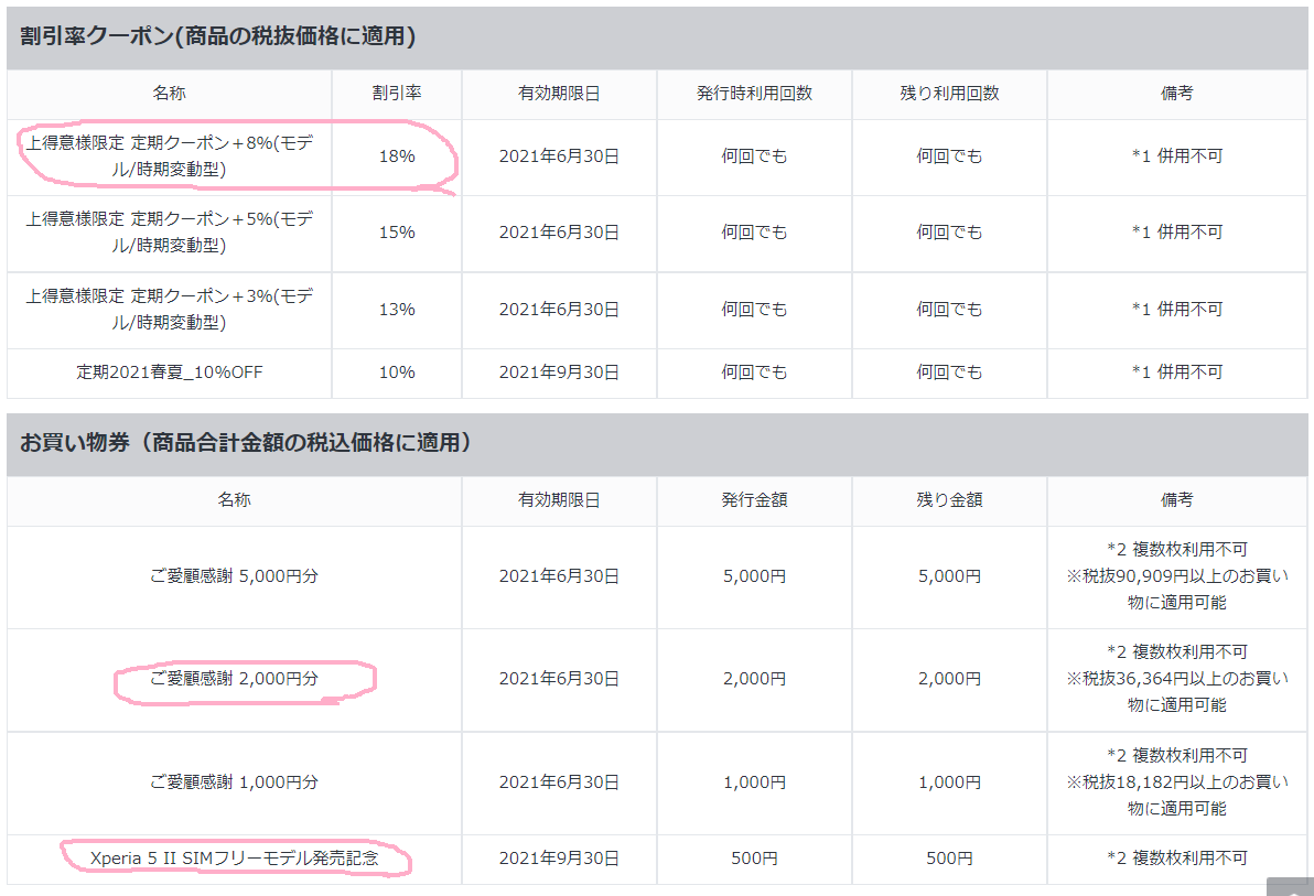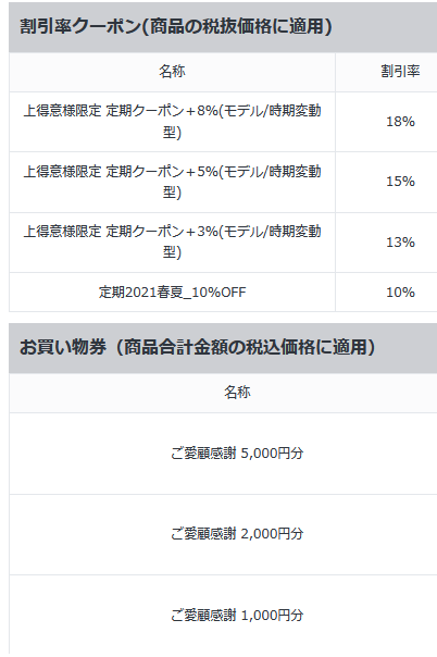 お得なクーポン 定期クーポン10% +8%、5%、3% 対象モデルのご案内ソニ。