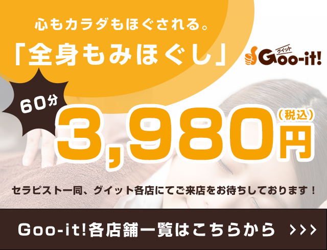 本格もみほぐしが60分3,980円!マッサージファンに大好評Goo-it! グイット。