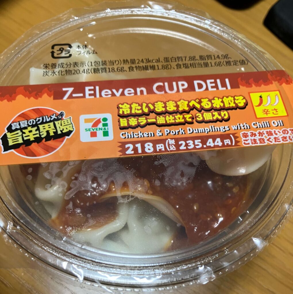 セブン旨辛界隈 プルップル!辛さ1の冷たいまま食べる水餃子を食べる辛いものが食べたい。