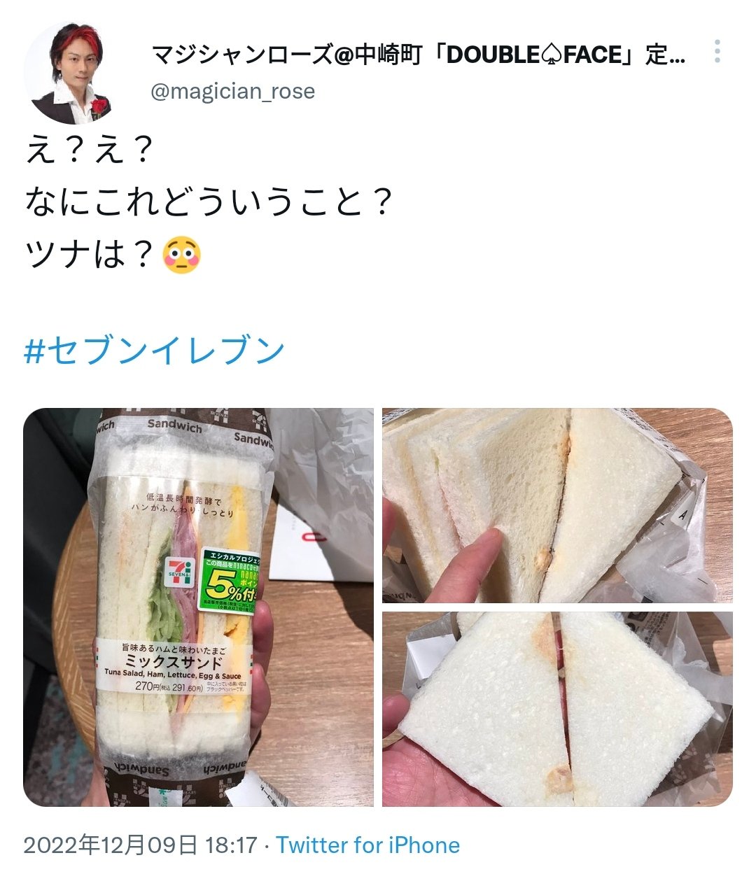 人力🅱ot 苫忖 on X: "RT @takigare3:悲報 セブンイレブンの詐欺サンド、ついに限界突破してしまう本業が手品のマジシャンが種も仕掛けもない純粋な悪に狼狽 @magician_rose https:t.co OBElcFGRQg"X。