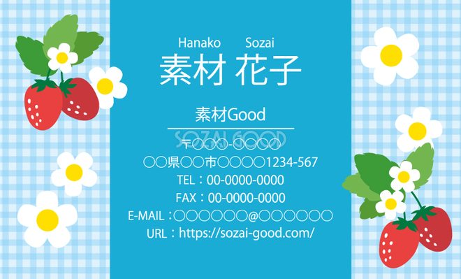 名刺の無料テンプレート ブルーでかわいいワンポイントイラスト入りのおしゃれなデザイン!無料テンプレートTemplateBox。