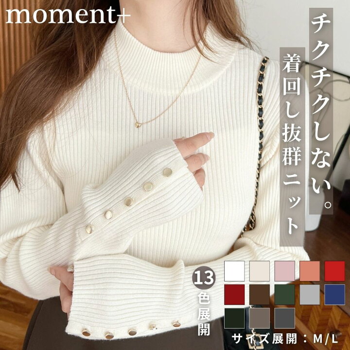 楽天市場一部予約:10月中旬 2着購入クーポンで1枚あたり\1,500 13色展開 ニット セーター ボトルネック リブニット 金ボタン インナーシンプル 無地 ストレッチ チクチクしない 高見え オフィス レイヤード レディース トップス AW 秋 冬 mt06664moment+。