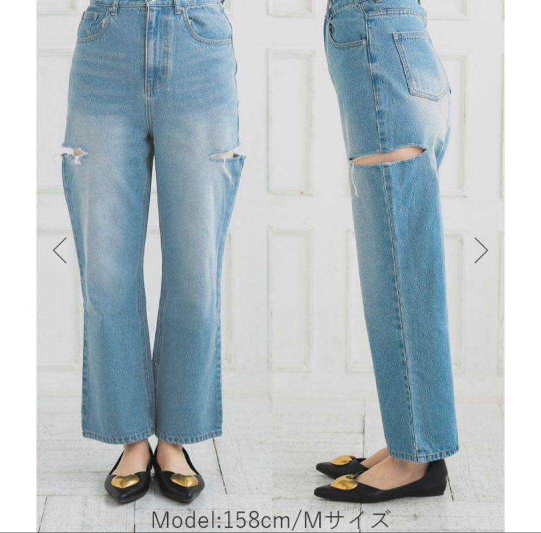 tiptop+pocket ティップトッププラスポケットウェスト調整可能 2サイズ展開 脇フリンジフレアデニムパンツ。