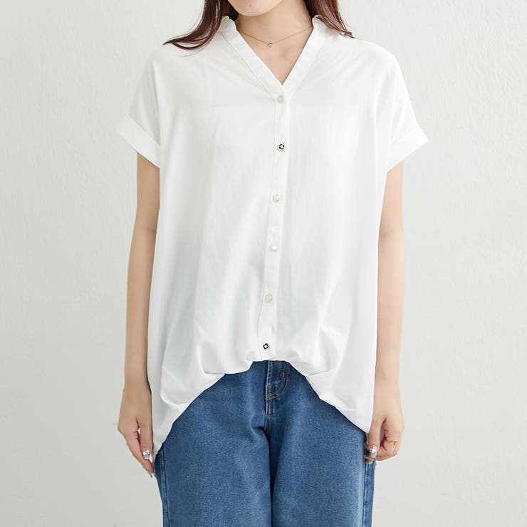 夏の支度 100%リネン*両面着用ブラウス 定番ポロネック 三粒ボタン*2色展開*T-98 CR ブラウス Rain is a girl 通販16198554Creema クリーマ。