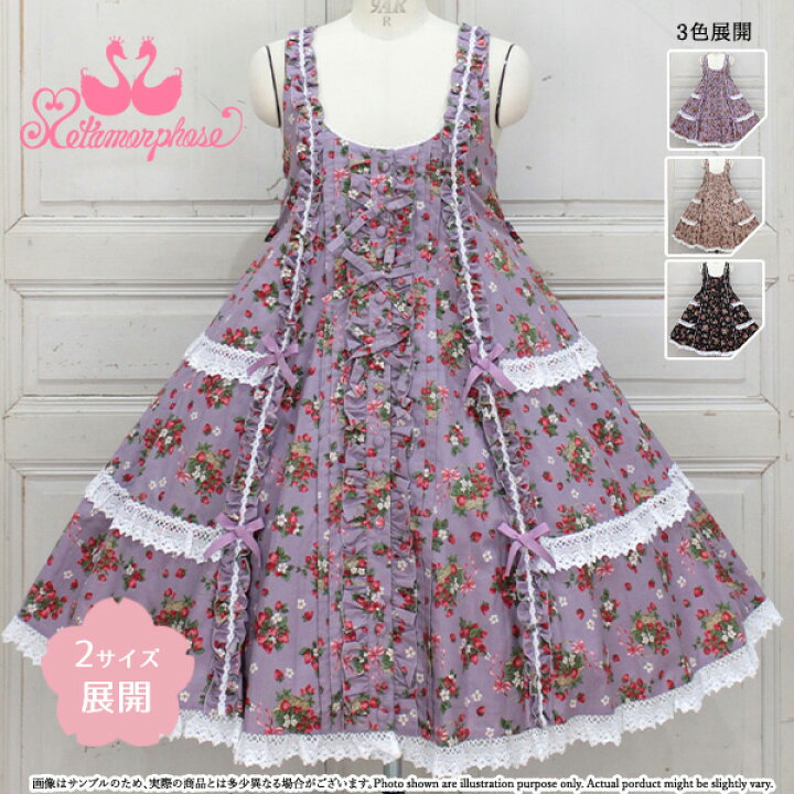 楽天市場 メタモルフォーゼ Strawberry Basketフロントボタンリボンジャンパースカート 2サイズ展開ロリータファッション ロリィタプラスサイズ Plus Size: Metamorphose temps de fille。