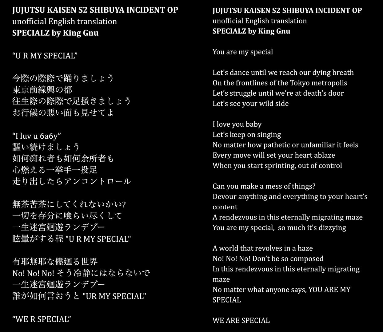 Tradução em português brasileiro da abertura do JJK S2 SPECIALZ por KingGnuc: @soukatsu_: r JuJutsuKaisen。