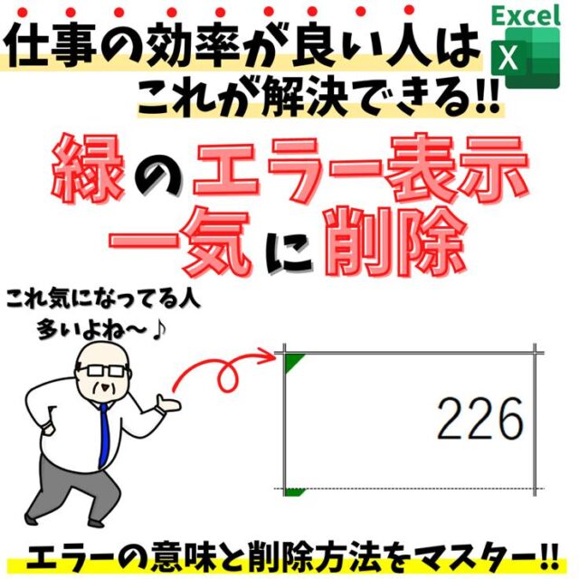 Excel 緑の三角マークを消そういろいろなエラーメッセージの意味と対処方法を解説します。