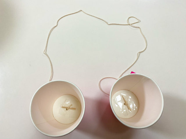 動画と写真あり 紙コップの糸電話の作り方 子機を作れば3人で遊べますミックスじゅーちゅ 子どもの遊びポータルサイト。