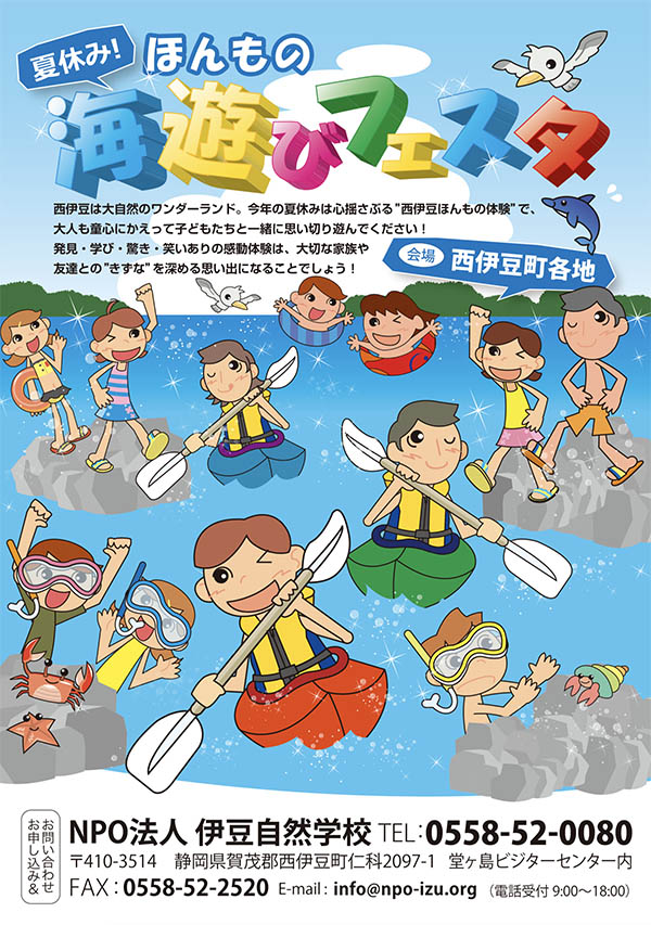 制作実績 : NPO法人伊豆自然学校様 海遊びフェスタ チラシ静岡県東部のチラシ パンフからホームページ制作も!広告制作のCHIYOROZ チヨロズ。