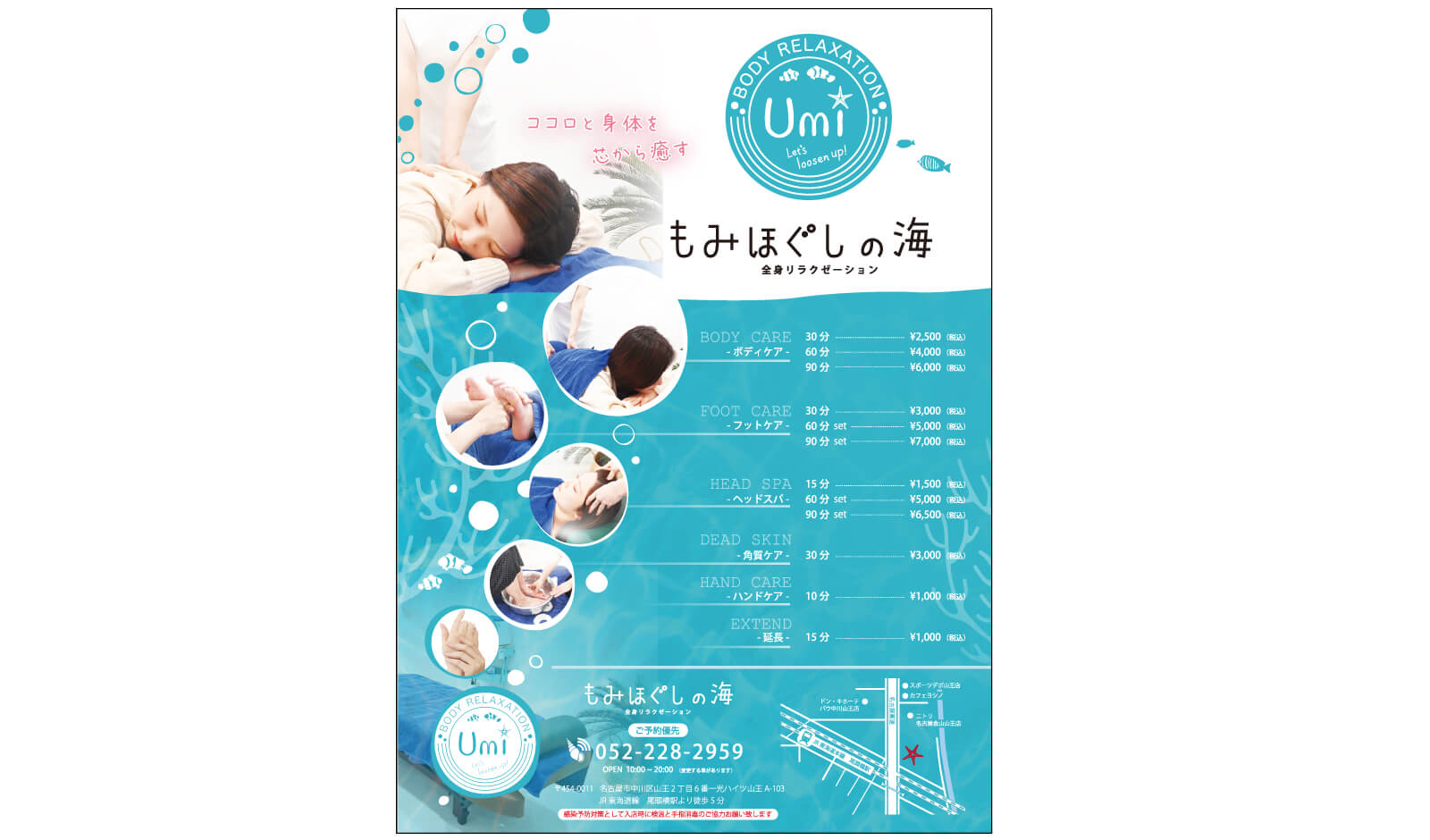 もみほぐしの海チラシ名古屋のホームページ制作 WEB制作会社株式会社ZoDDo。