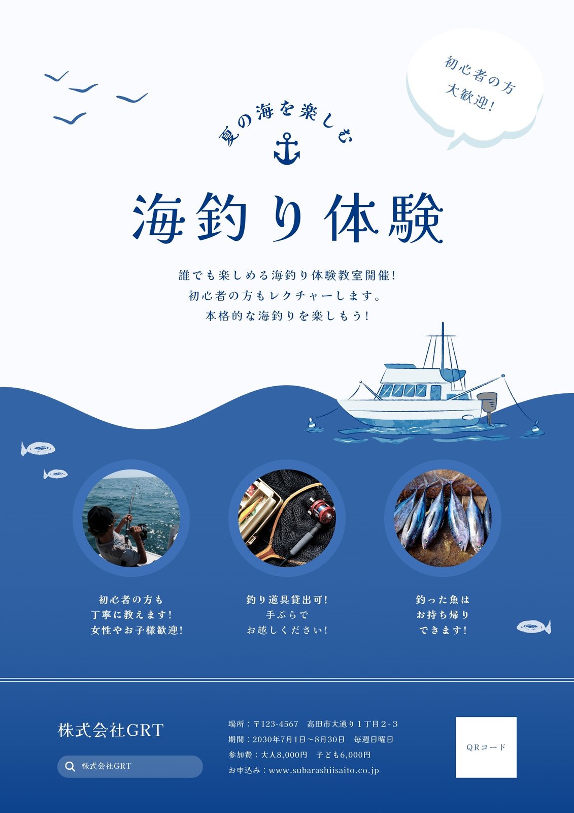 釣り大会、海、イベント、A3ポスター&チラシ、Word60320Wordの印刷物・チラシ無料テンプレートなら「テンプレBaby」。