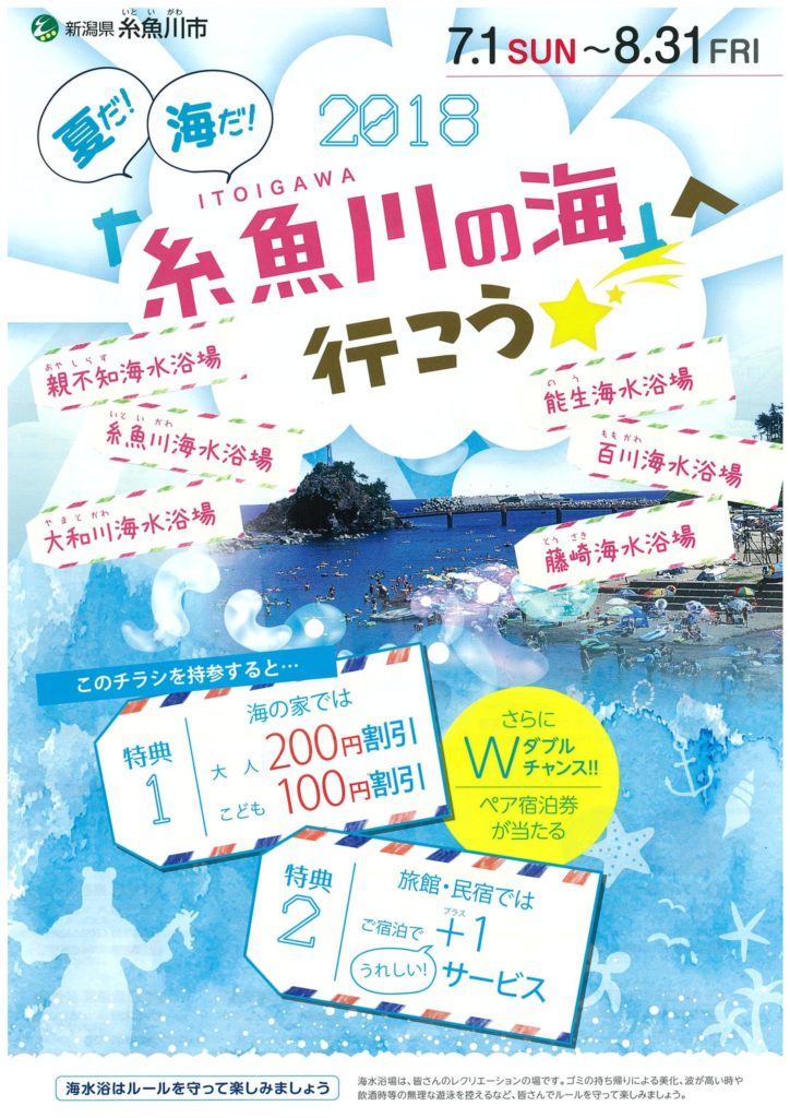 夏だ!海だ!糸魚川へ行こうキャンペーン新潟県糸魚川の観光案内。