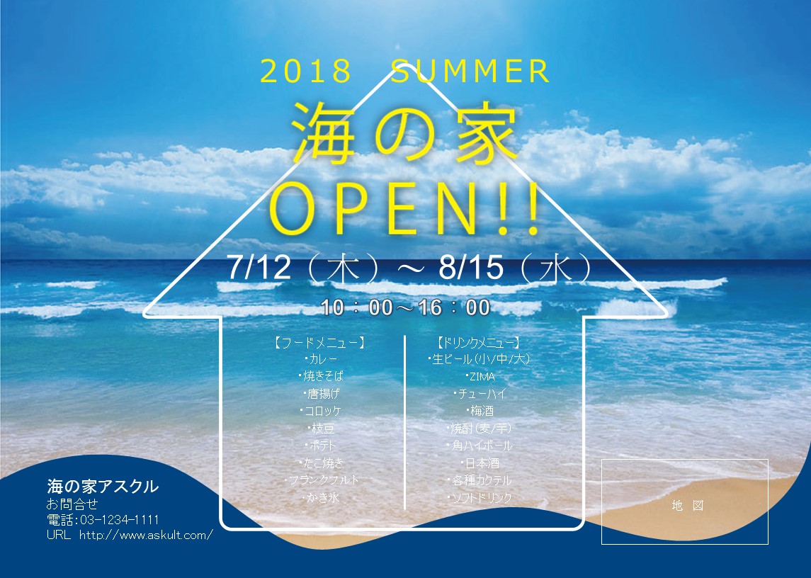 海の家の無料チラシテンプレート-パワポンbyアスクル。