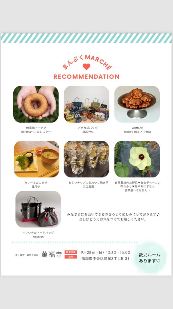 秋のまんぷくマルシェのご案内萬福寺 福岡 浄土真宗 真宗大谷派 東本願寺。