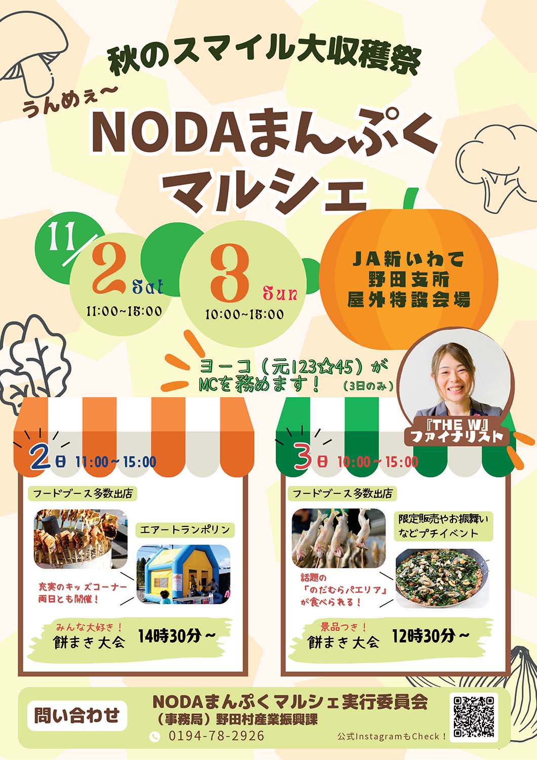 秋のスマイル大収穫祭 うんめぇ~NODAまんぷくマルシェ 年間イベント情報 野田村観光協会。