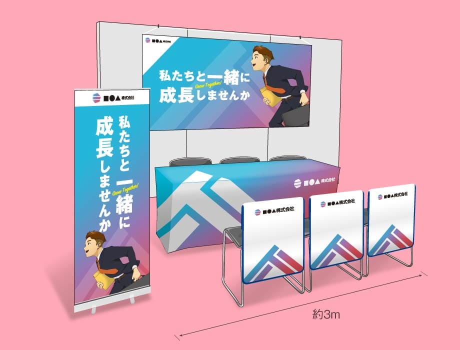 採用ブースセット 椅子カバー・バナー・テーブルクロス・幕。