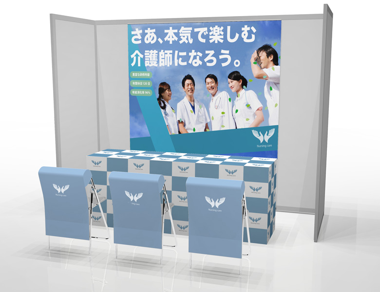 採用ブース装飾セット 就活生の目に留まる「やりがい」を表現青葉印刷株式会社。