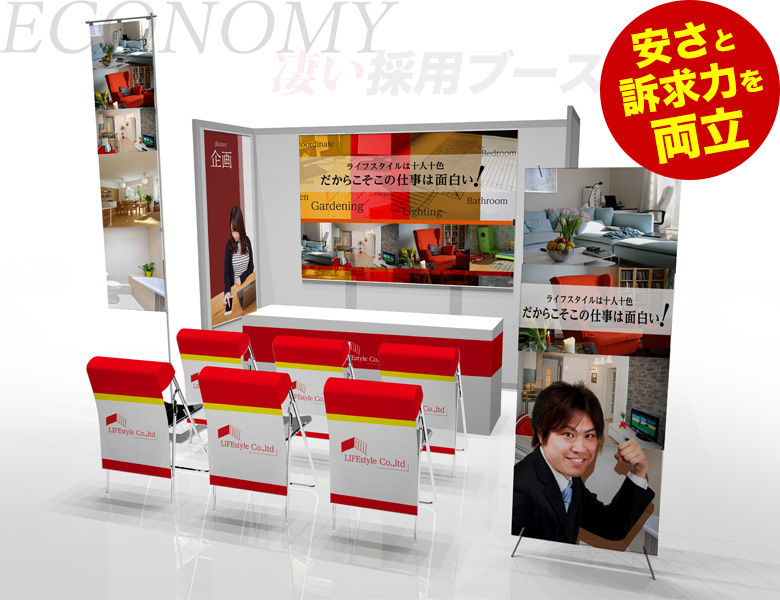 セット販売 エコノミー 採用ブース 装飾ツール専門館 株式会社ゼンシン 展示会の企画│運営│施工│設営│催事│ディスプレイ│什器レンタル│装飾は、株式会社ゼンシン。
